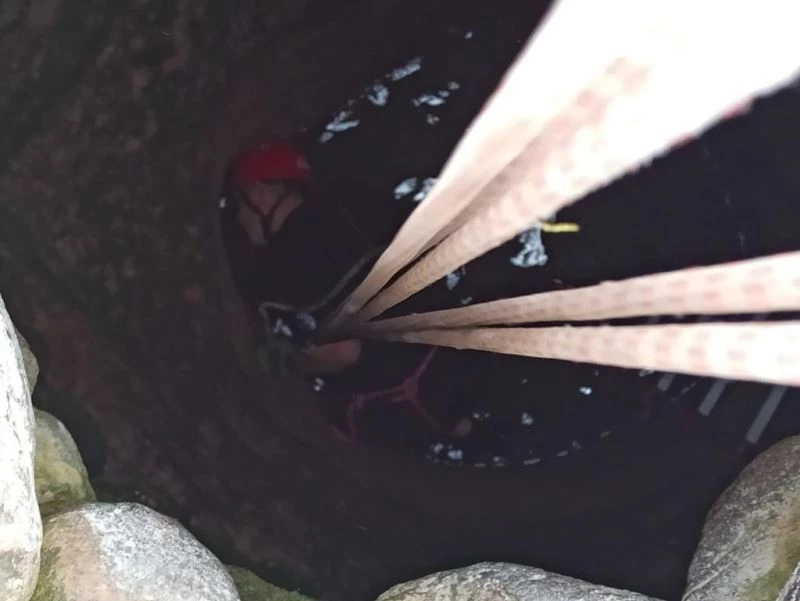 Su kuyusuna düşen keçi 4 saatlik çalışma sonrası kurtarıldı