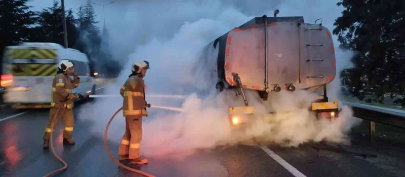 Balıkesir’de bir tanker seyir halinde iken alev aldı. 45 AIT 954 plakalı su tankeri, Balıkesir-İzmir çevreyolu Çayırhisar Mahallesi mevkinde seyir halindeyken lastik kısmından tutuşmaya başladı. Aracının yandığını fark eden sürücü itfaiyeyi arayarak durumu bildirdi. Olay yerine gelen ekipler yangını kısa sürede söndürürken, araçta maddi hasar oluştu.