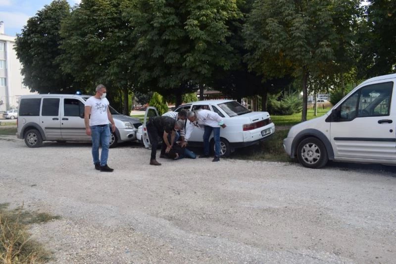 Olay Yeri İnceleme ekiplerinin araç içerisinde yaptığı aramalarda bir miktar sigara ve kesici alet ele geçirildi. Şüpheli Azat K. ise gözaltına alındı.