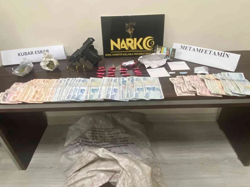Bismil Narkotik Polisinin yaptığı çalışmalar neticesinde yaklaşık 500 gram uyuşturucu madde, 1 adet tabanca ve uyuşturucu ticaretiyle ilişkili nakit para ile yakalanan S.S. (26), N.Y. (35), İ.Y. (22), İ.A. (31) isimli şüpheliler, Bismil İlçe Emniyet Müdürlüğündeki işlemlerinin ardından Bismil Adalet Sarayına sevk edildi.