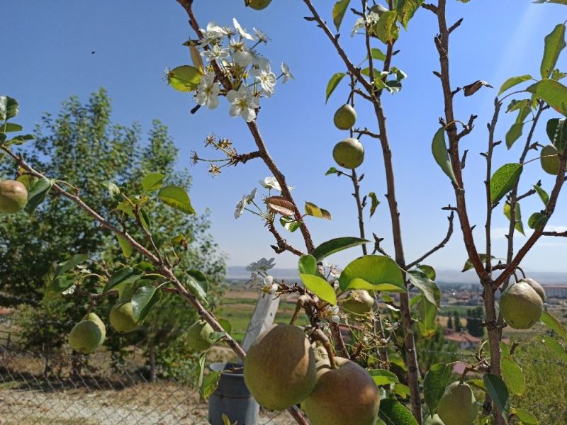 Afyonkarahisar’ın Şuhut ilçesinde ağustos ayının sonunda çiçek açan armut ağacı görenleri şaşkına çevirdi.