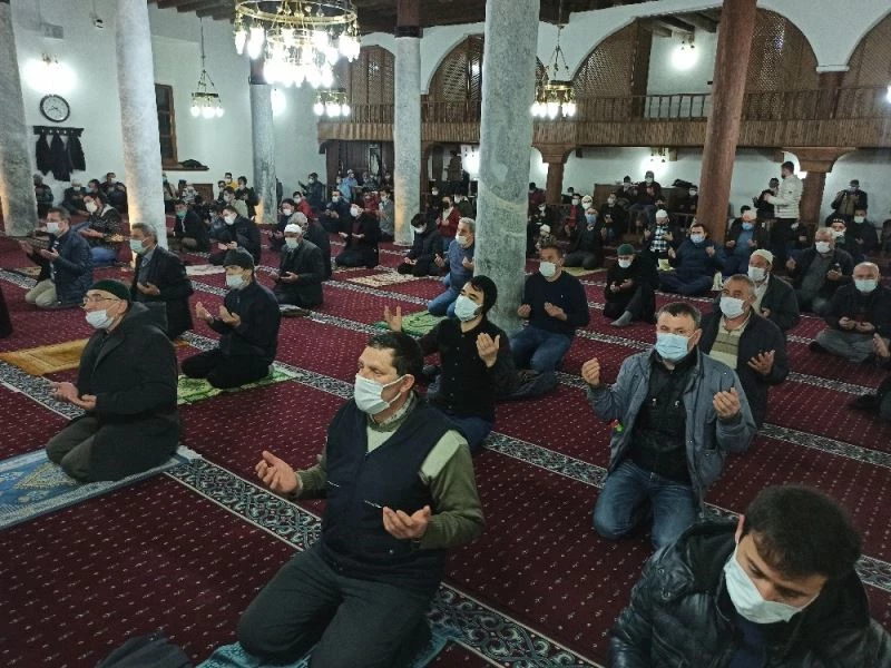 Afyonkarahisar’ın Şuhut ilçesinde Miraç Kandili nedeniyle ilçe genelindeki camilere akın eden vatandaşlar pandemi kurallarına uyarak namazlarını kılıp dualarını etti.