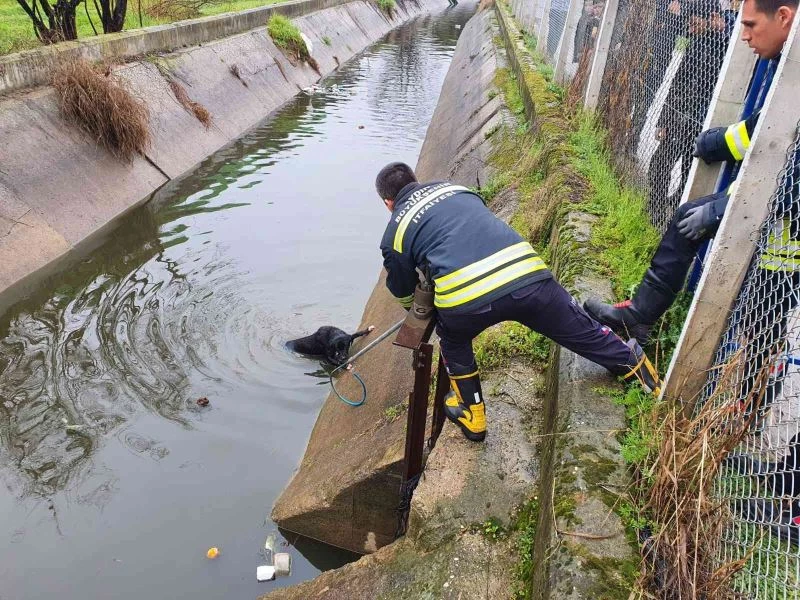 Aydın’ın Nazilli ilçesinde sulama kanalına bir köpeğin düştüğünü gören öğrencilerin ihbarıyla okul idaresi ve itfaiye seferber olurken, köpek Aydın Büyükşehir Belediyesi İtfaiye Daire Başkanlığı ekiplerinin çalışması ile özgürlüğüne kavuştu.