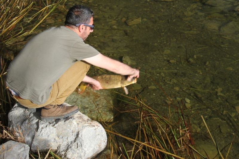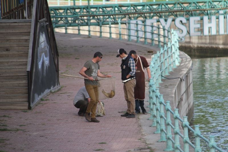Öte yandan, çalışma esnasında beli kırılmış bir sazan balığı da kanal sularından çıkarıldı. Belinin kırık olmasına rağmen kanal sularında yaşamını sürdürmeye çalışan sazan balığı da göl sularına salındı.