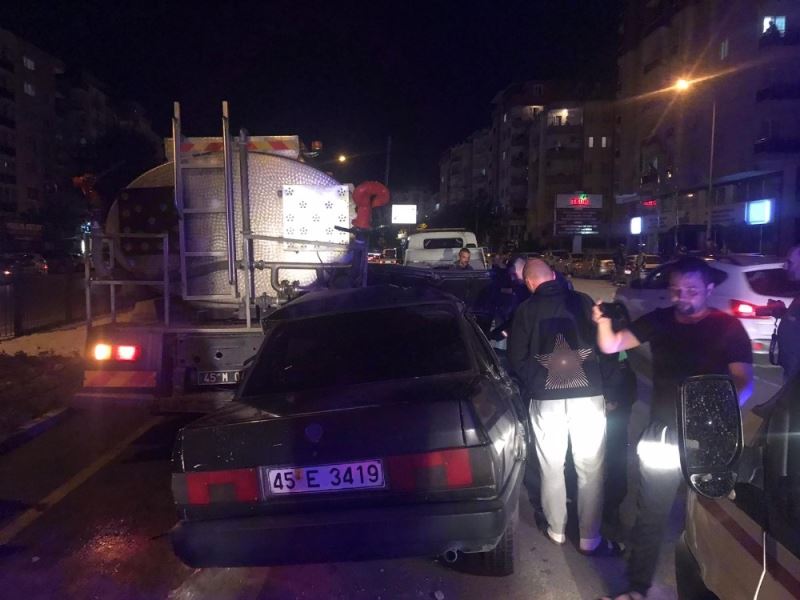 Manisa’da refüjdeki çiçekleri sulayan tankere arkadan çarpan otomobilin sürücüsü hayatını kaybetti.