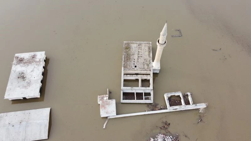 Kars’ta baraj gölü suları altında kalan Boğazköy Camii havadan görüntülendi. Kars Barajı’nın yeniden su tutmasıyla birlikte sular altında kalan cami ve köy okulu kartpostallık görüntüler oluşturdu.