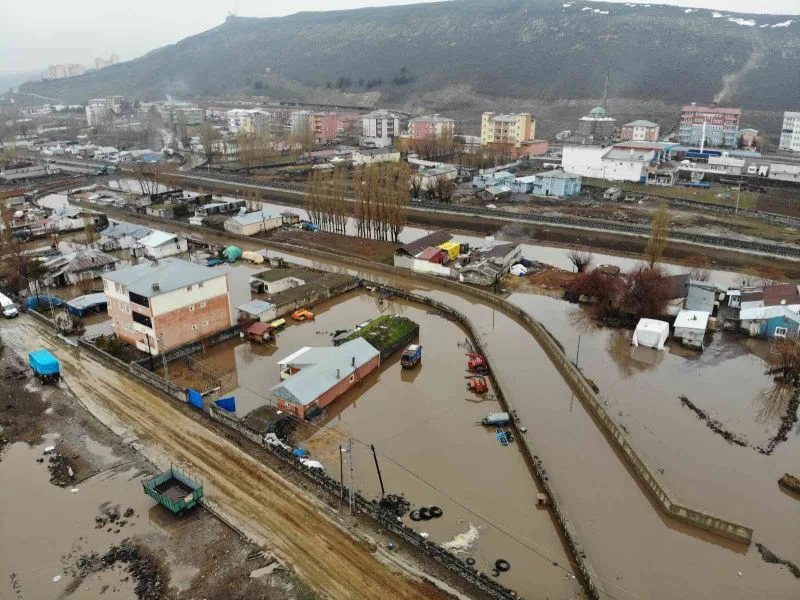 Kars’ta sular altında kalan evler havadan görüntülendi. Selin vurduğu mahallede yaralar sarılıyor.