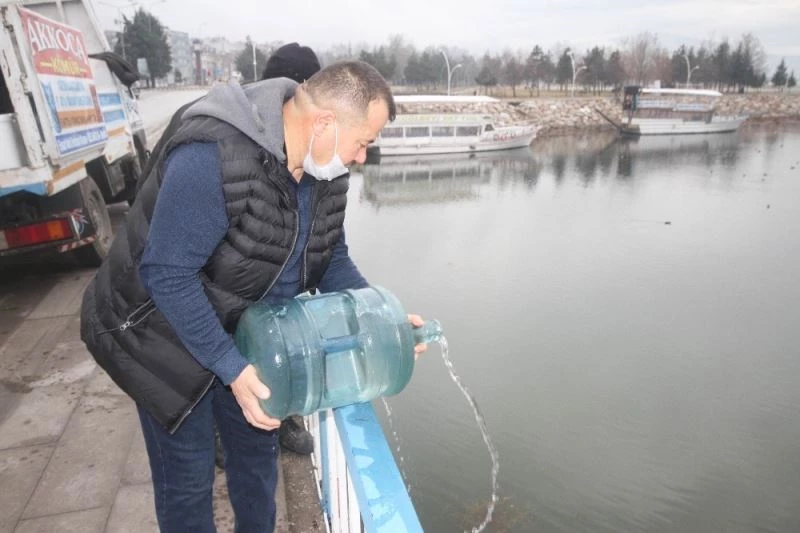 Suları çekilen Beyşehir Gölü’ne damacanalarla su döktü