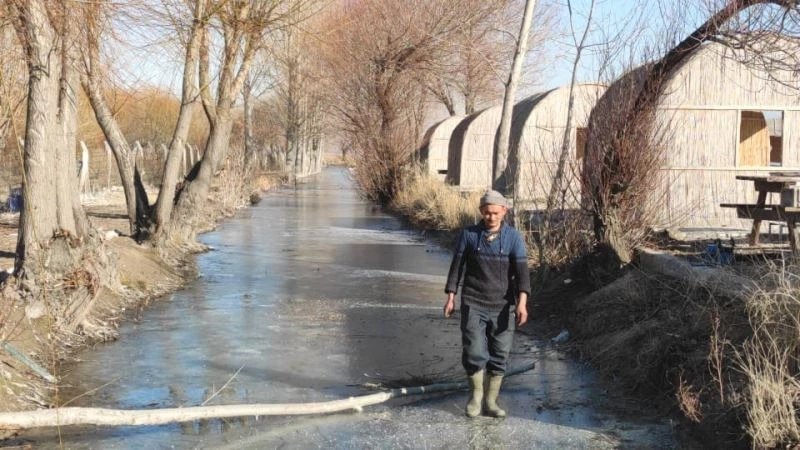 Kayseri’nin Develi ilçesinde bulunan Sultan Sazlığı Kuş Cenneti içerisindeki göl, sıfırın altında 10 dereceye kadar düşen soğuk hava nedeniyle buz tuttu.