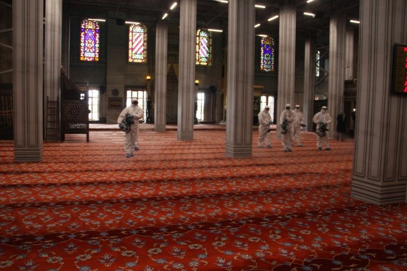 Yeni tip korona virüs ile mücadele kapsamında cemaat ile namazlara kapatılan camilerde 29 Mayıs’ta ilk cuma namazı kılınacak. Bu kapsamda bugün Fatih Belediyesi ekipleri tarafından Sultanahmet Camii dezenfekte ediliyor.