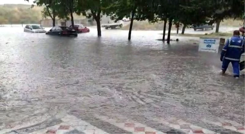 Sultangazi’de şiddetli sağanak yağış nedeniyle sokak suyla doldu. Araçlar suda mahsur kaldı.