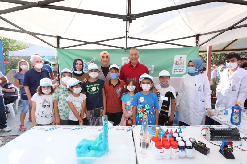 Cumhuriyet Mahallesi Masal Parkı’na gelen bilim fuarda otobüsüne çocuklar yoğun ilgi gösterdi. Matematikten astronomiye, resimden fen bilimlerine, robotik kodlamadan dramaya 6 atölye ve 11 farklı alanda uzman eğitmenler tarafından verilen atölye eğitimlerini çocuklar, en ince noktasına kadar takip etti.
