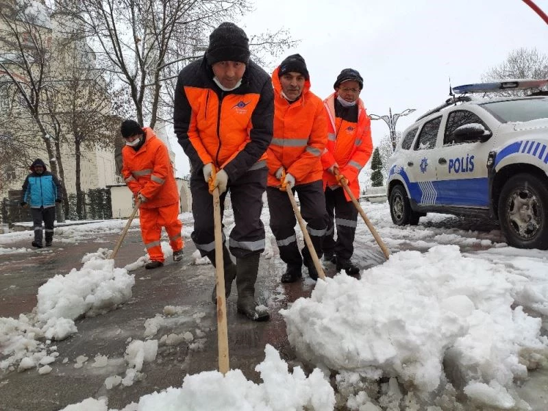 Sultangazi’de kar yağışı nedeniyle beyaza bürünen yollar ve kaldırımlar, temizlik ekiplerince açılıyor. Olumsuz hava koşullarına aldırış etmeyen ekipler, cadde ve meydanlarda kar çalışması yürütüyor.