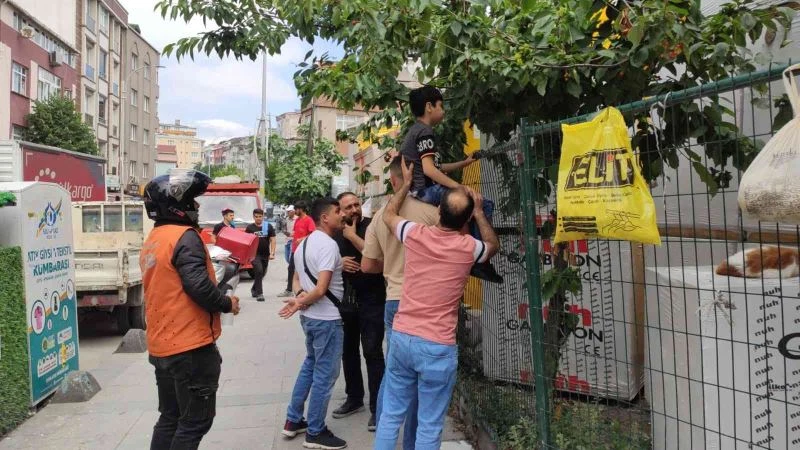 Sultangazi’de kiraz ağacından inerken kaydı: Çocuğun eline demir çit saplandı