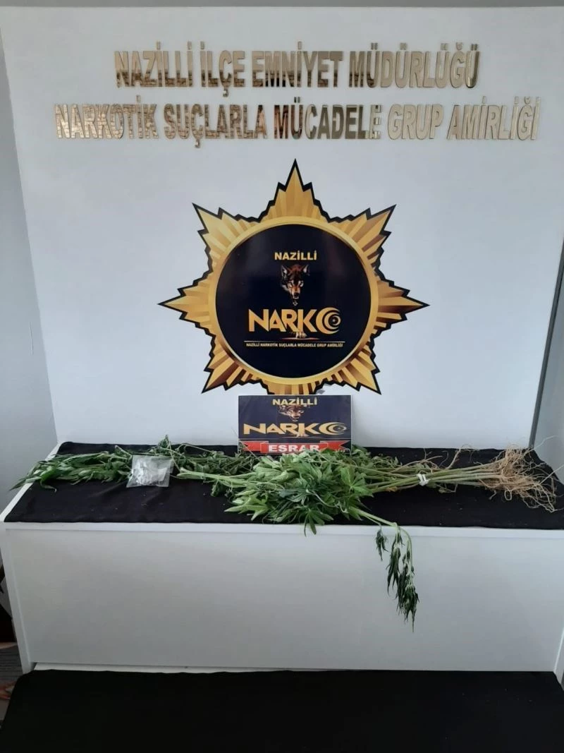 Edinilen bilgiye göre, Nazilli Narkotik Suçlarla Mücadele ve KOM Grup Amirliği ekiplerince Sultanhisar ilçesinde N.T. ve T. T. isimli şahısların ikametinde ve çevresindeki arazi içerisinde yapılan aramada toplam 20 kök Hint Keneviri bitkisi ve 7 gr esrar maddesi ele geçirildi.