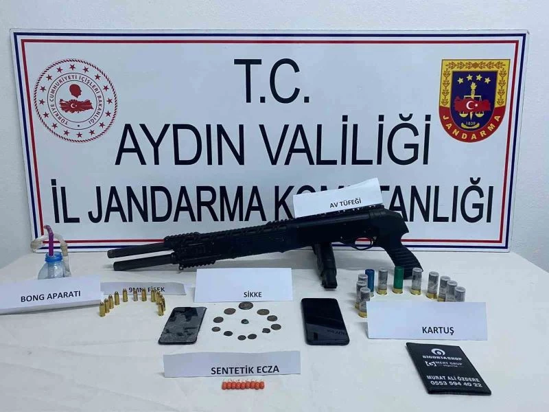 Aydın İl Jandarma Komutanlığı, KOM Şube Müdürlüğü ekiplerince Uyuşturucu madde satıcısına yönelik çalışma yapıldı. Sultanhisar ilçesinde O.K isimli şahsa ait arabada yapılan aramada, 12 adet Bizans, Roma ve Osmanlı dönemlerine ait sikke, 9 adet sentetik ecza, 1 adet pompalı av tüfeği ele geçirildi. Şüpheli şahsı yakalama çalışmalarının devam ettiği öğrenildi.