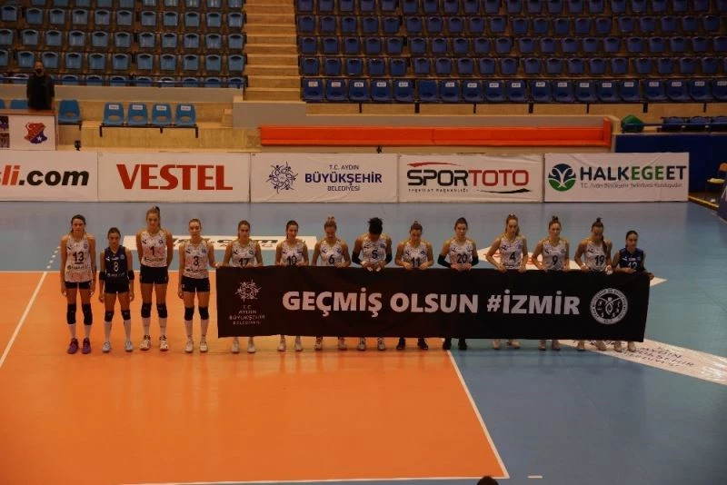 Sultanlar Ligi 13. hafta karşılaşmasında Aydın Büyükşehir Belediyespor Kadın Voleybol Takımı, sahasında ağırladığı Karayolları’nı 3-2 mağlup etti. Aydın Büyükşehir Belediyespor, sahaya “Geçmiş olsun İzmir” yazılı pankartla çıktı.