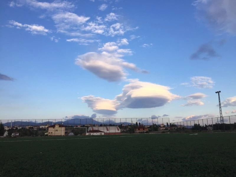 Suluova ilçesinde gökyüzünde bulutların oluşturduğu ilginç görüntü objektiflere yansıdı. Türkiye’de ve Dünya’da ender olarak görünen lenticular (merceksi) bulutlar kümesi Suluova’da görüntülendi.