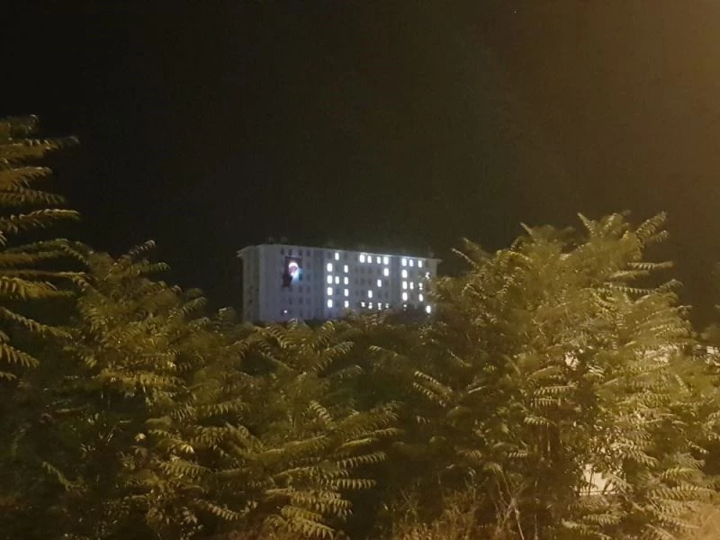 Sungurlu Kredi Yurtlar Kurumu (KYK) yurdunda oda ışıklarıyla pencerelere Azerbaycan’a destek olmak amacıyla AZR yazıldı.