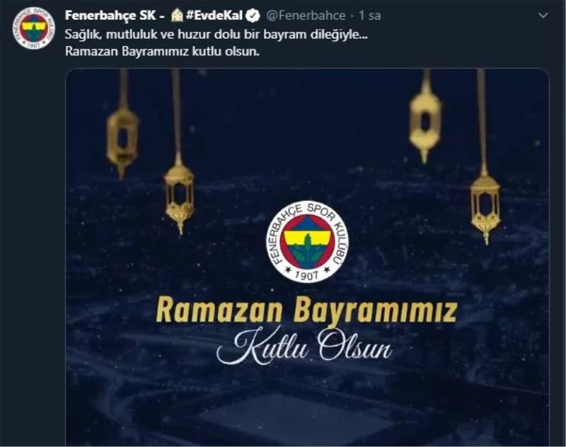Fenerbahçe: "Sağlık, mutluluk ve huzur dolu bir bayram dileğiyle... Ramazan Bayramımız kutlu olsun."