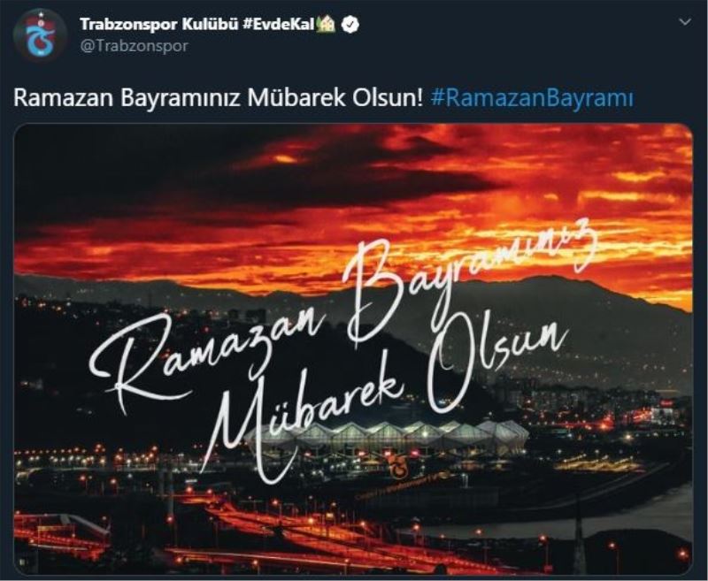 Çaykur Rizespor: "Sevdiklerinizle bir arada; sağlık, huzur ve mutluluk dolu nice bayramlar geçirmenizi dileriz. Birlik içinde tüm camiamızın mübarek Ramazan Bayramını kutluyoruz!"