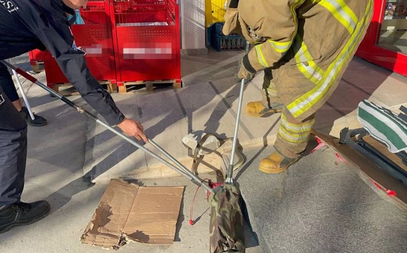 Edinilen bilgiye göre, olay 15.30 sıralarında Bursa’nın İznik ilçesi Topkapı mevkiinde bulunan bir süpermarkette yaşandı. Vatandaşlar marketin önünde yılanı görünce panikleyerek itfaiyeyi aradı. Olay yerine gelen itfaiye ekipleri yılanı etkisiz hale getirmek için uzun mücadeleler verdi. Boyu 1 buçuk metre, zehirli olduğu öğrenilen yılan, ekiplerin uzun mücadelesi sonucu canlı yakalandı ve daha sonra uzak bir tepede doğaya salındı.