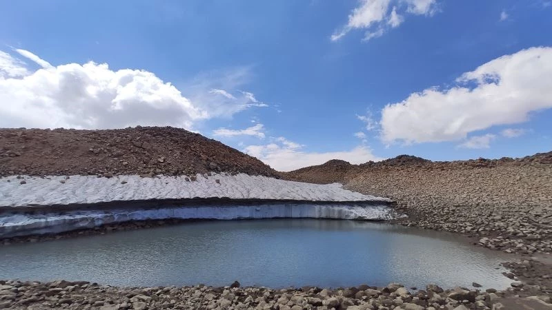 Türkiye’nin en yüksek 3’üncü dağı olan 4 bin 58 rakımlı Süphan Dağı’ndaki kar kütleleri küresel iklim değişikliği nedeniyle hızla eriyor.