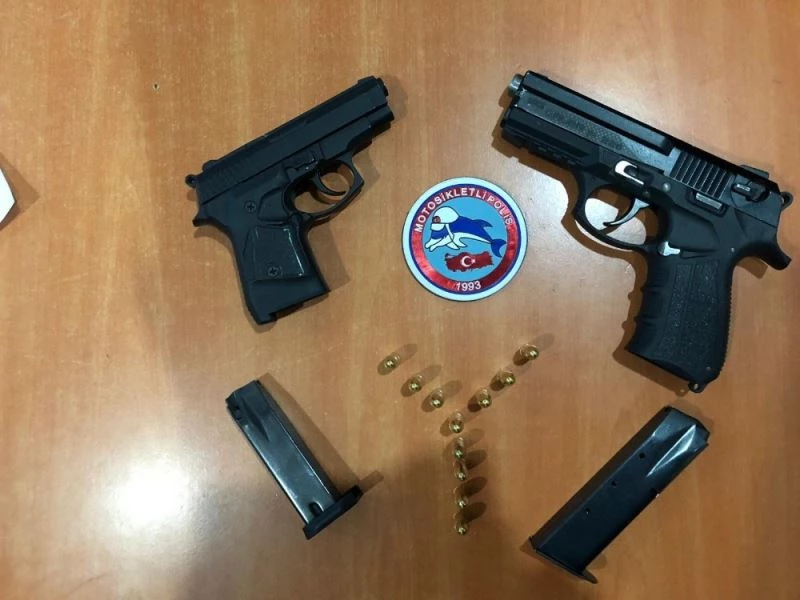 İl Emniyet Müdürlüğü motosikletli polis timlerinin, Mareşal Fevzi Çakmak Mahallesi, Şeyh Şamil Bulvarı ile Gümüşkent mevkisi Çavdarlı köyü yol ayrımında yaptığı uygulamada, şüphe üzerine durdurulan 3 kişinin üzerinde yaptığı aramada ruhsatsız tabanca, kuru sıkı tabanca, bir miktar esrar ile 11 mermi ele geçirildi. Polis ekiplerinin, F.Ç., Ş.G. ile R.P. hakkında adli ve idari işlem yaptığı öğrenildi.