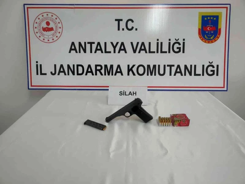 Antalya’nın Gazipaşa İlçesi’nde jandarma ekipleri tarafından şüphe üzerine durdurularak aranan kişinin üzerinde 1 adet ruhsatsız tabanca ve 19 adet MKE yapımı 7,65 mm çapında fişek ele geçirildi.