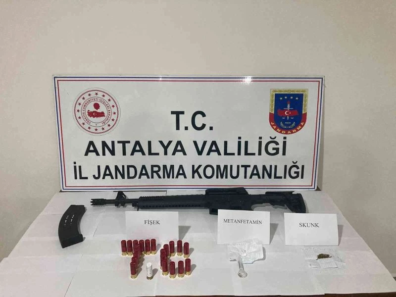 Antalya’da uygulama yapan jandarma ekipleri tarafından şüphe üzerine durdurulan araçta yapılan aramada 1 adet ruhsatsız av tüfeği, 3 gram esrar ve 3 gram metamfetamin ele geçirildi.
