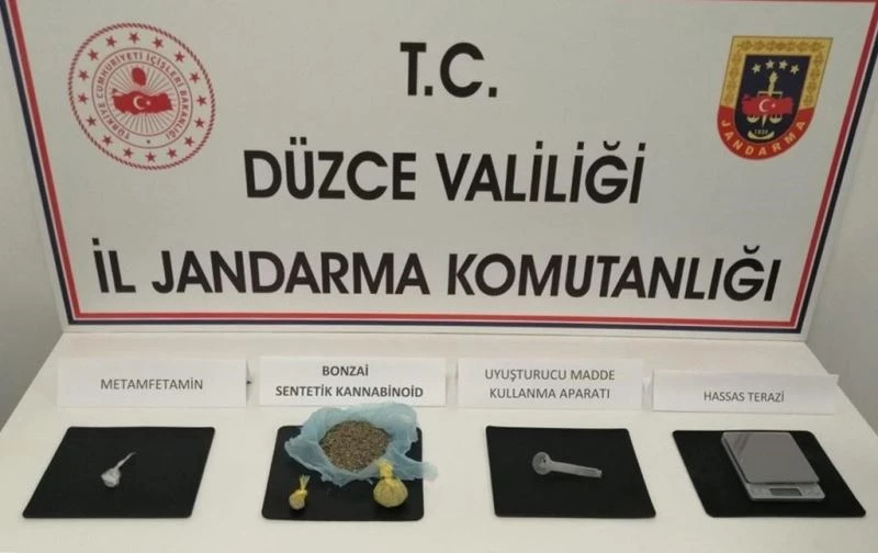 Düzce’de jandarma ekiplerinin şüphelenerek durdurduğu araçta ve şahısların üzerinde uyuşturucu madde bulundu.