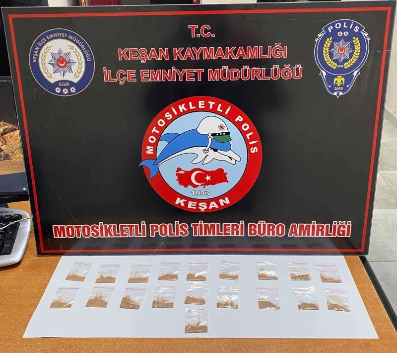 Keşan’da uyuşturucu madde ticaretinin önlenmesine yönelik denetimlerine devam eden İlçe Emniyet Müdürlüğü ekipleri, farklı tarihlerde yapılan kontrollerde, Yeni Mescit Mahallesi’nde durumundan şüphelenilen iki kişiyi durdurdu.