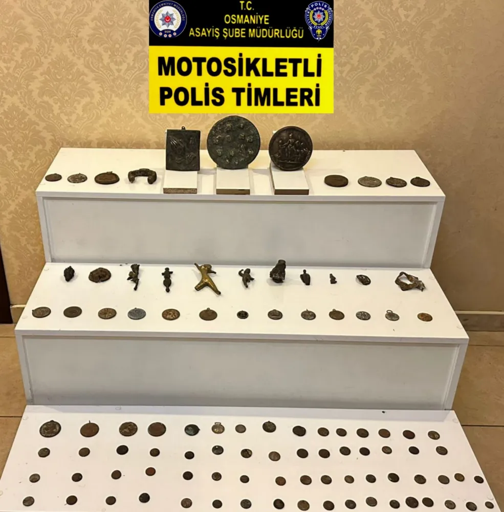 Osmaniye’de polisin şüphe üzerine durdurduğu otomobilde, 100 adet tarihi eser bulundu. İl Emniyet Müdürlüğüne bağlı Motosikletli Polisler, Yunus Emre Mahallesi’nde şüphe üzerine bir otomobili durdurdu. Araçta yapılan aramada Roma ve Bizans dönemine ait olduğu düşünülen 100 adettarihi eser ele geçirildi. Gözaltına alınan araç sürücüsü Ali L. ve yanında bulunan Hamit L. Hakkında adli işlem başlatıldı.