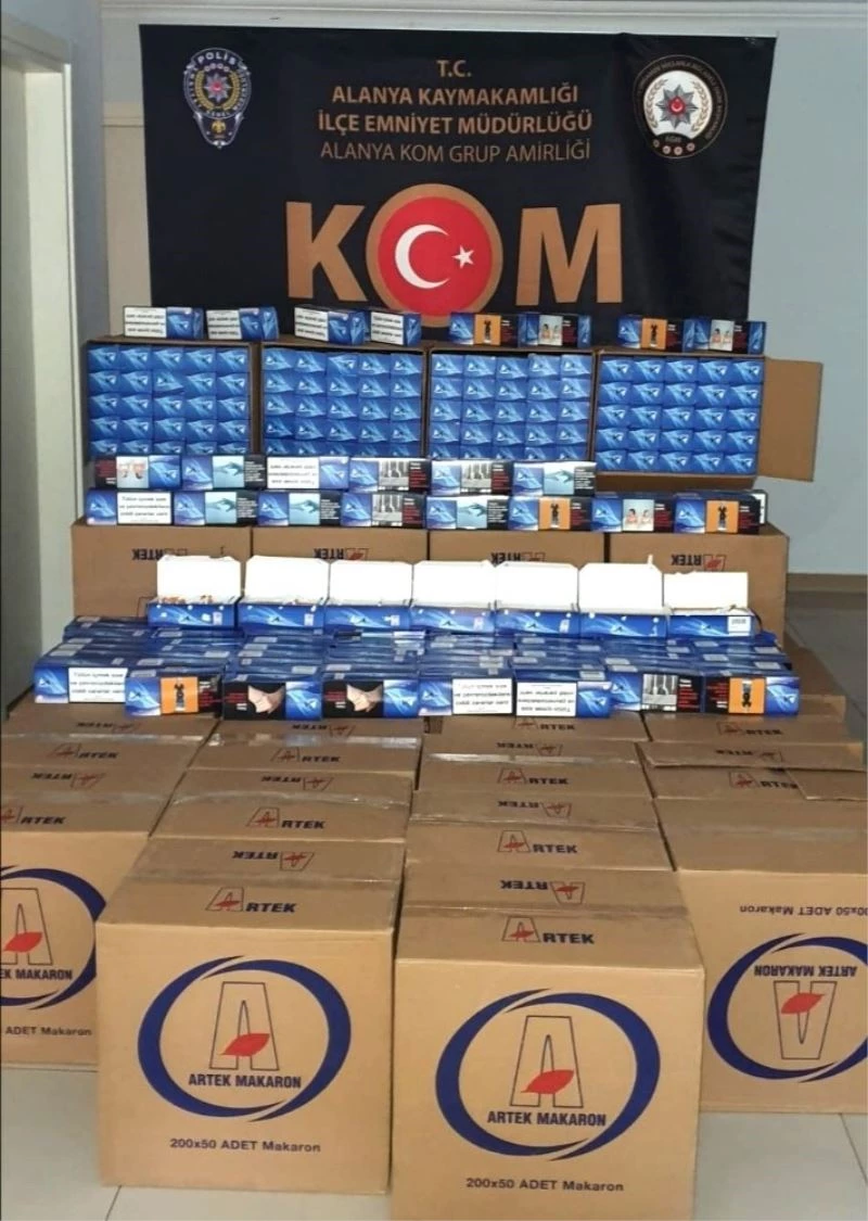 Alanya İlçe Emniyet Müdürlüğü Kaçakçılık ve Organize Suçlarla Mücadele (KOM) Grup Amirliği ekipleri, Dinek Mahallesi’ndeki uygulama noktasında durumundan şüphe duyulan 07 ANG 531 plakalı otomobili durdurdu. Bunun üzerine araçta arama yapan polis, kolilerin içerisinde 400 bin adet gümrük kaçağı makaron ele geçirirken, olayla ilgili sürücü Ü. A.’yi (32) gözaltına aldı. Gözaltına alınan şüpheli, hakkında 5607 sayılı Kaçakçılıkla Mücadele Kanunu’na muhalefet etmek suçları kapsamında işlem yapıldıktan sonra savcılık talimatıyla serbest bırakıldı.