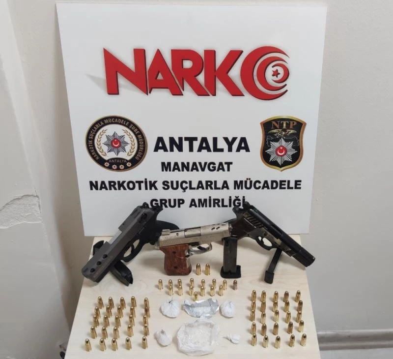 Antalya’nın Manavgat ilçesinde şüphe üzerine durdudulan araçta silah ve uyuşturu madde ele geçirilirken olayla ilgili 2 şüpheli gözaltına alındı.