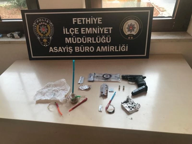 Muğla’nın Fethiye ilçesinde şüphe üzerine durdurularak aranan araçta silah ve uyuşturucu madde ele geçirilirken, olayla ilgili 3 şüpheli de gözaltına alındı.