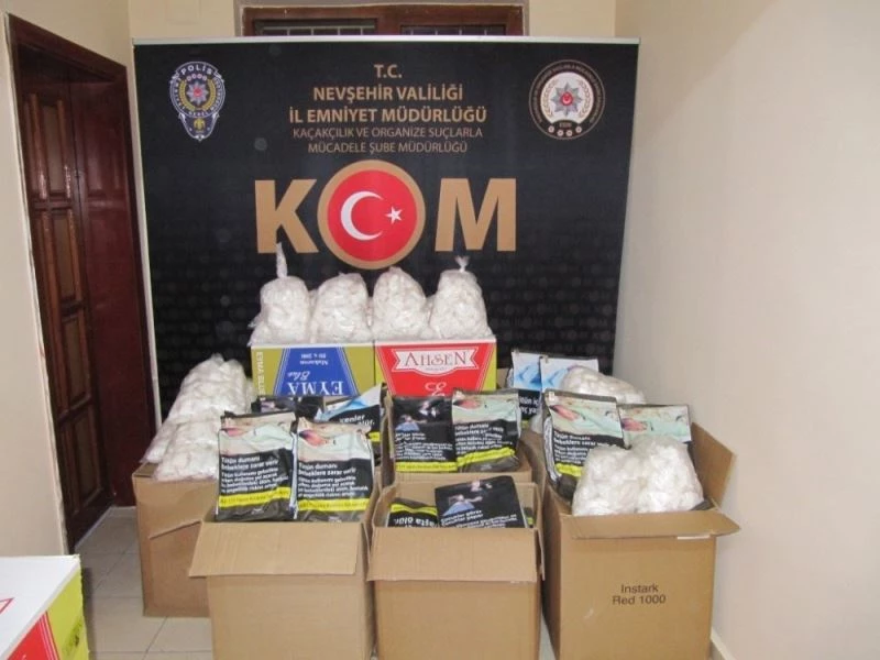 Edinilen bilgilere göre, Derinkuyu yol kontrol ve denetleme noktasında şüpheli kamyon içerisinde yapılan aramada mükerrer olduğu değerlendirilen 80 kilogram tütün, 15 adet bandrol, 50 bin adet değişik markalarda makaron, 80 bin adet sigara filtresi ele geçirildi. Kamyon sürücüsü B.A. polis ekipleri tarafından gözaltına alınırken adli tahkikatın başlatıldığı öğrenildi.