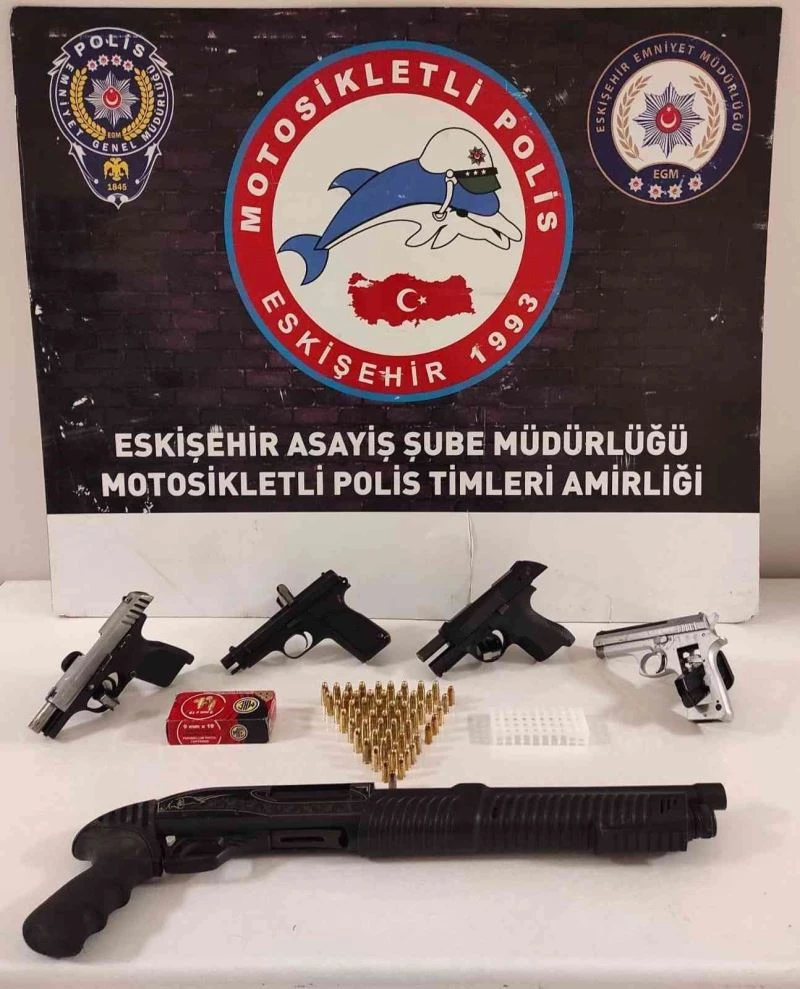 Eskişehir’de polis ekiplerinin şüphe üzerine arama yaptığı 4 şahıs üzerinde 4 tabanca ve 1 tüfek ele geçirildi.