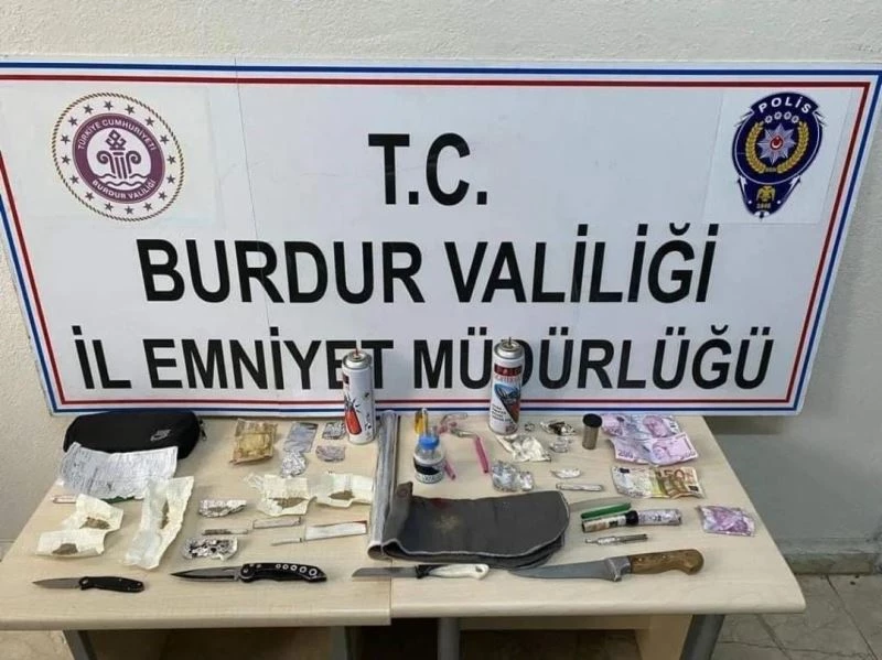 Burdur’da devriye gezen polis ekipleri şüphelendikleri araçta arama yaptı. Araçta uyuşturucu maddeler ve 4 adet bıçak ele geçirildi.