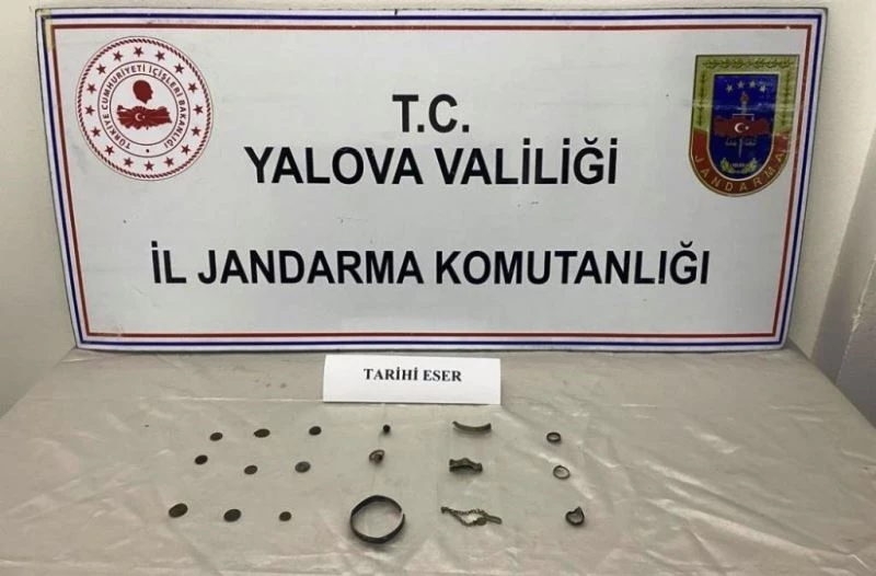 Yalova’nın Altınova ilçesinde jandarmanın şüpheli görüp durduğu bir kişinin üzerinden tarihi eser niteliği taşıyan eşyalar ele geçirdi.