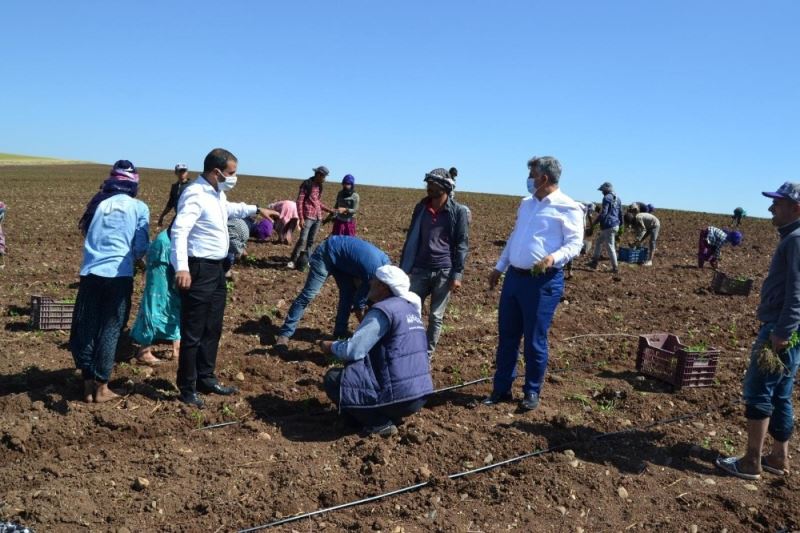Konuşmaların ardından kurum müdürleri ve tarım işçileri tarlaya giderek dikim yaptı.