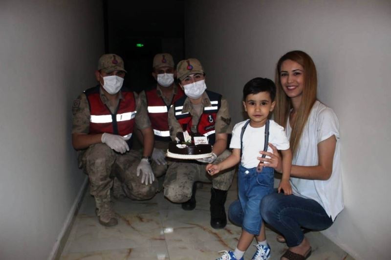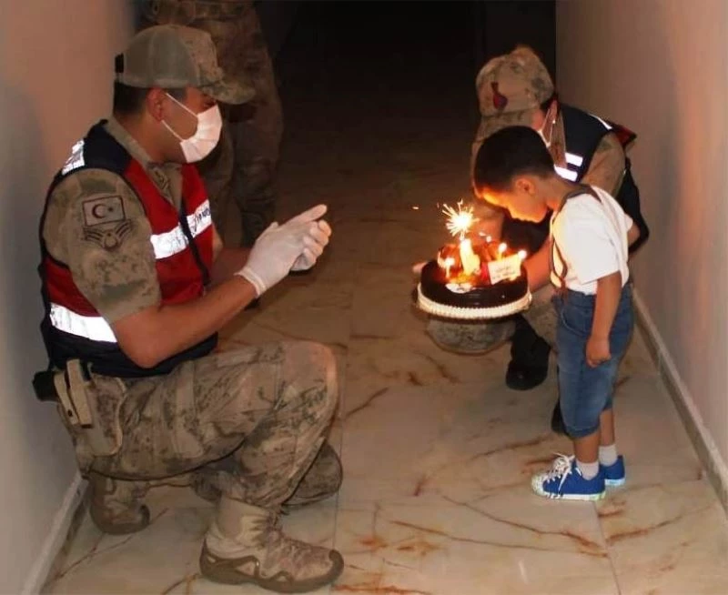 Suriye’nin İdlib kentine bağlı More köyünde görev yapan ve 10 aydır 4 yaşındaki oğlunu göremeyen Uzman Çavuş Gökhan Birel’in (30) isteği üzerine, Düziçi İlçe Jandarma Komutanlığı personelleri, uzman çavuşun oğlu Göktürk’e babası adına doğum günü pastası aldı.