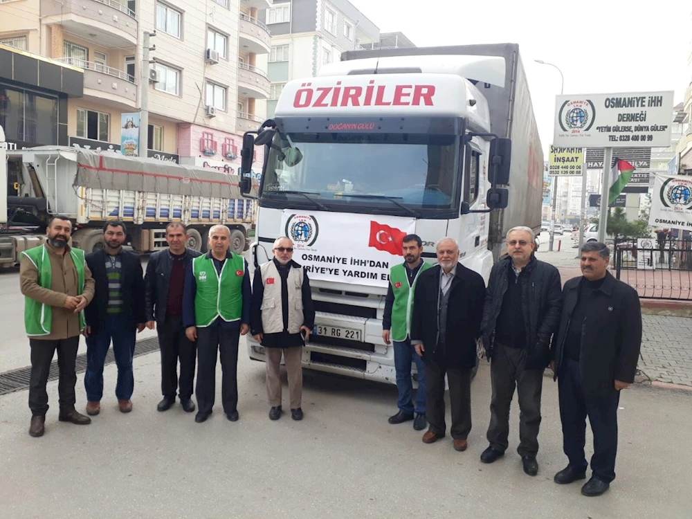 Osmaniye İnsan Hak ve Hürriyetleri İnsani Yardım Derneği tarafından, Suriye`ye 2 tır ihtiyaç malzemesi gönderildi. Dernek Başkanı Nadir Sarıcan, Atatürk Caddesi`ndeki dernek binası önünde düzenlenen törende, Suriyelilere zorlu yaşantılarında yardım etmenin önemli olduğunu söyledi. Hayırseverlerin desteğiyle bugüne kadar ellerinden geldiğince Suriye`ye yardım göndermeye çalıştıklarını aktaran Sarıcan, "Osmaniye`den 2018`in ilk yardımlarını Suriye`deki kardeşlerimize gönderiyoruz. İyilik her zaman her yerde sloganıyla Osmaniyeli hayır severlerin bağışladığı 173 Bin lira ile alınan un, bulgur, su, battaniye, yastık, medikal ürünler ve giyimden oluşan yardımlar için hayırseverlerimize teşekkür ediyoruz. Hayırseverlerin bundan sonraki yapacakları yardımları mazlum bölgelere ulaştırmaya devam edeceğiz" ifadelerini kullandı. Konuşmanın ardından yardım TIR`ları dualarla Suriye`nin Halep şehrine uğurlandı.