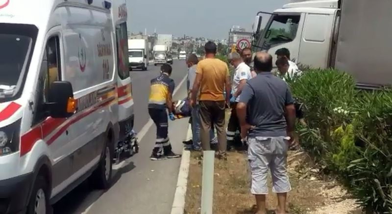 Edinilen bilgiye göre kaza, Mersin Antalya D-400 karayolunun Antalya Mersin istikametinde meydana geldi. Mustafa T. (36) yönetimindeki arkasında römork bulunan 33 KMH 40 plakalı kamyon yol aydınlatma çalışması başlatılan bölgede sürücüsünün fenalaşarak direksiyon hakimiyetini kaybetmesiyle şeridinden çıkıp çalışma yapılan alanda refüje çıktı.