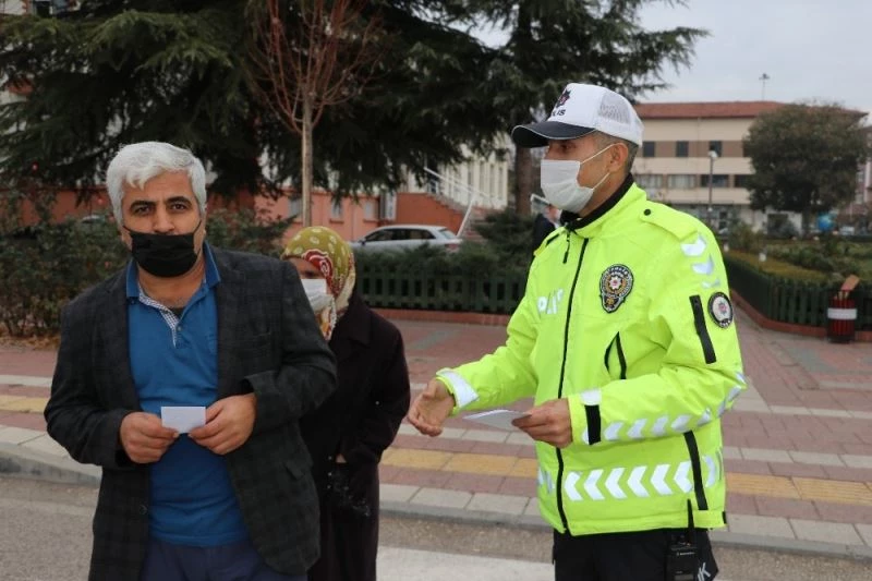 Sürücüleri durdurdular, yaya önceliğine dikkat çektiler