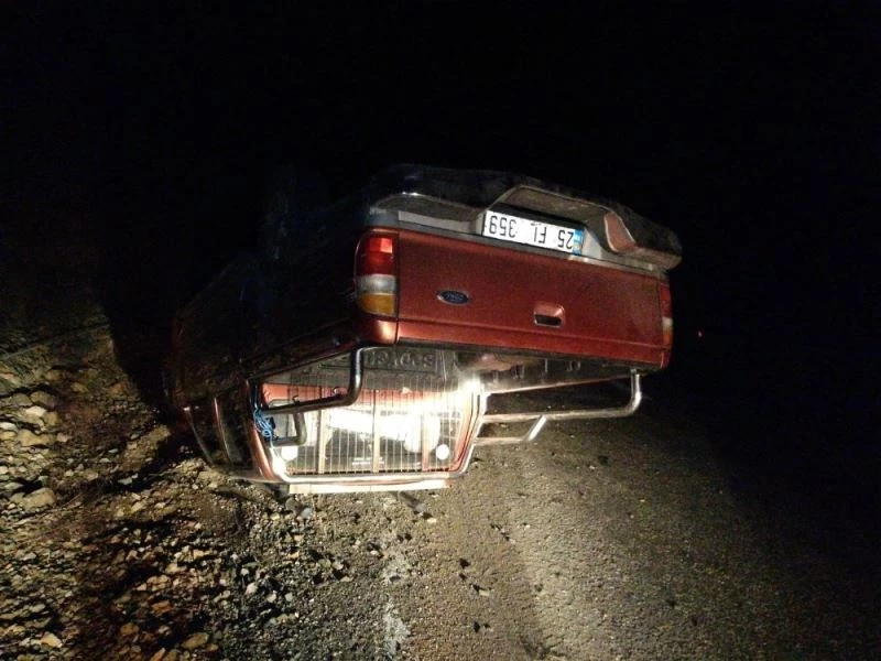 Erzurum’da sürücüsünün direksiyon hakimiyetini kaybettiği kamyonet ters döndü.