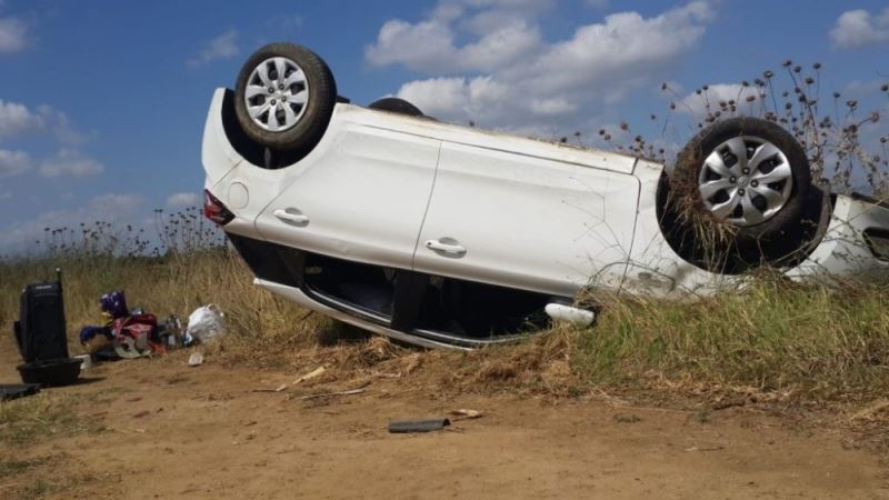 Sürücüsünün direksiyon hakimiyetini kaybettiği araç takla attı