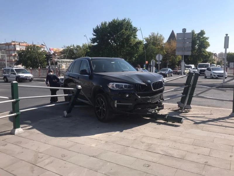 Kayseri’de sürücüsünün direksiyon hakimiyetini kaybettiği cip, yol kenarında bulunan bariyerlere çarptı.