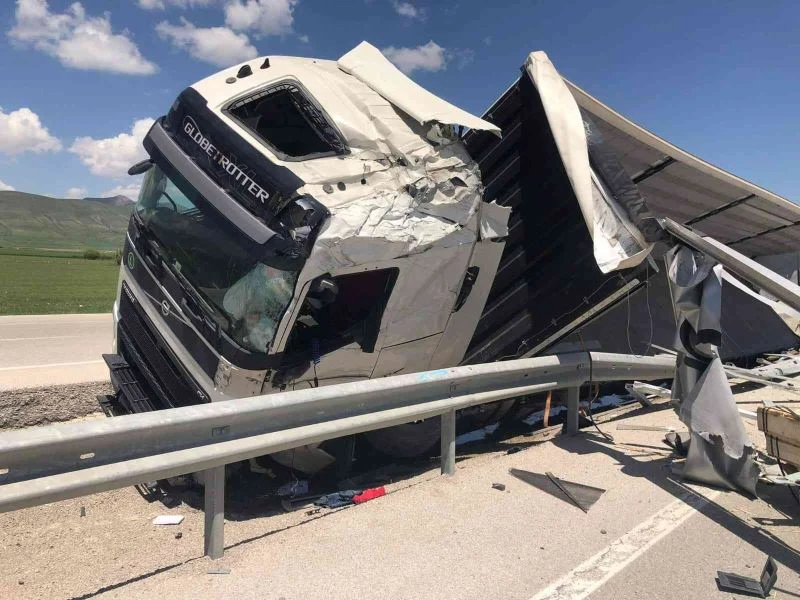 Cam yüklü tır, orta refüjdeki kanala girerek ancak durabildi. Olayda büyük ölçüde maddi hasar oluşurken, can kaybı olmaması sevindirdi.