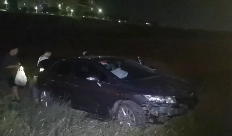 Sürücüsünün hakimiyetini kaybettiği otomobil boş araziye uçtu: 2 yaralı